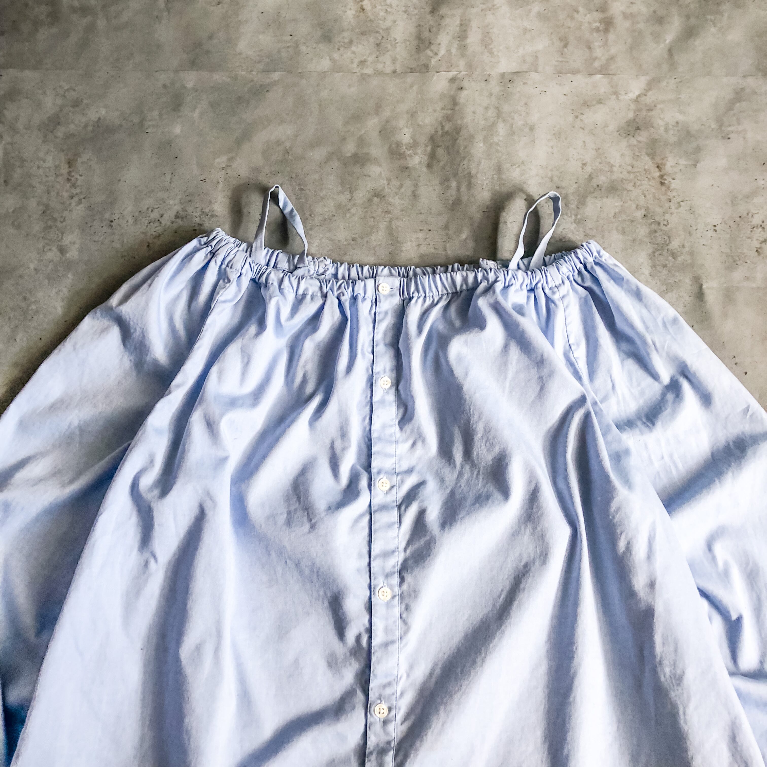 爽やかなライトブルーカラーにオフショルダーと通常のブラウスとしても着れる2wayです。