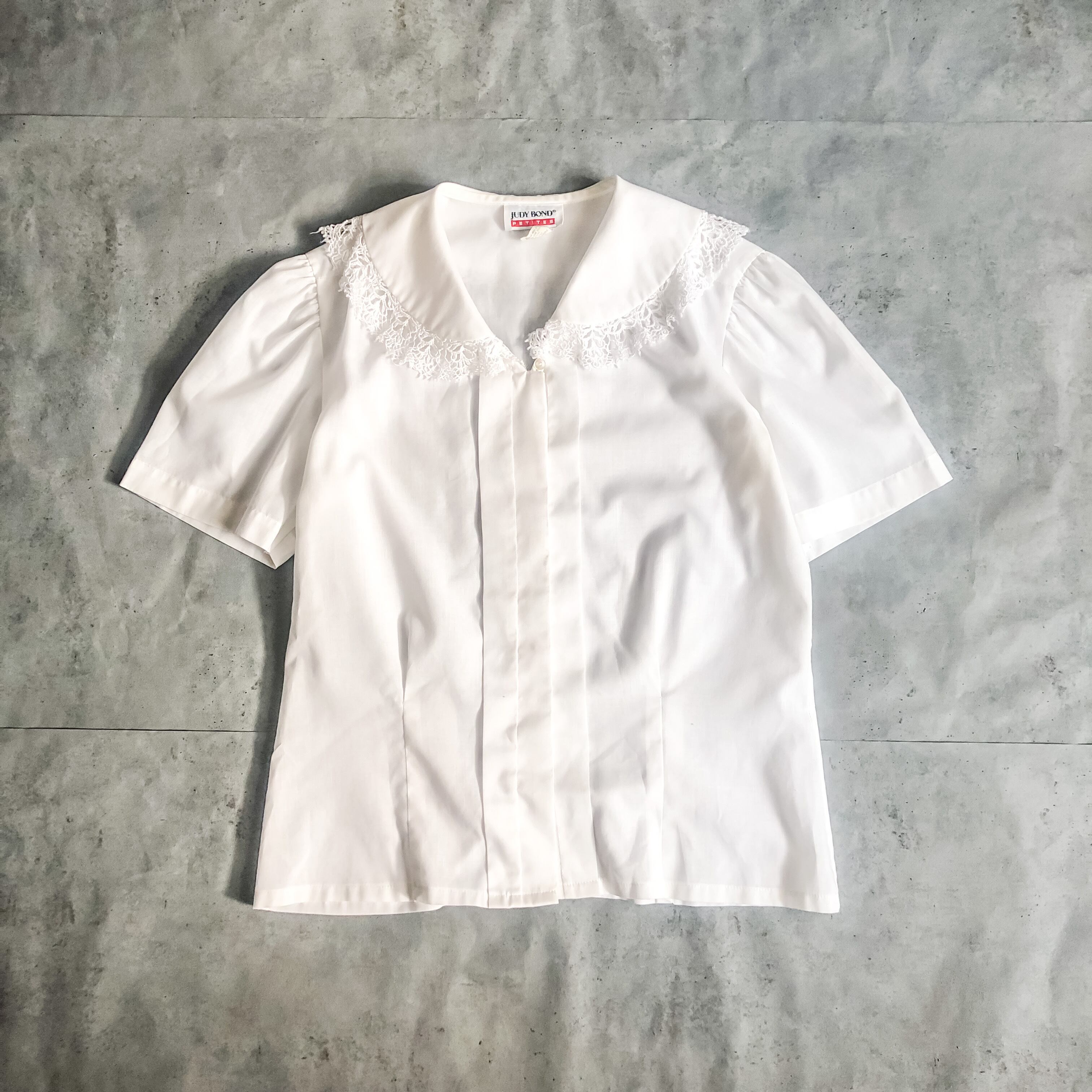 ホワイトカラーに、フロントのプリーツデザインや、丸みのあるレース襟が可愛らしい逸品です。