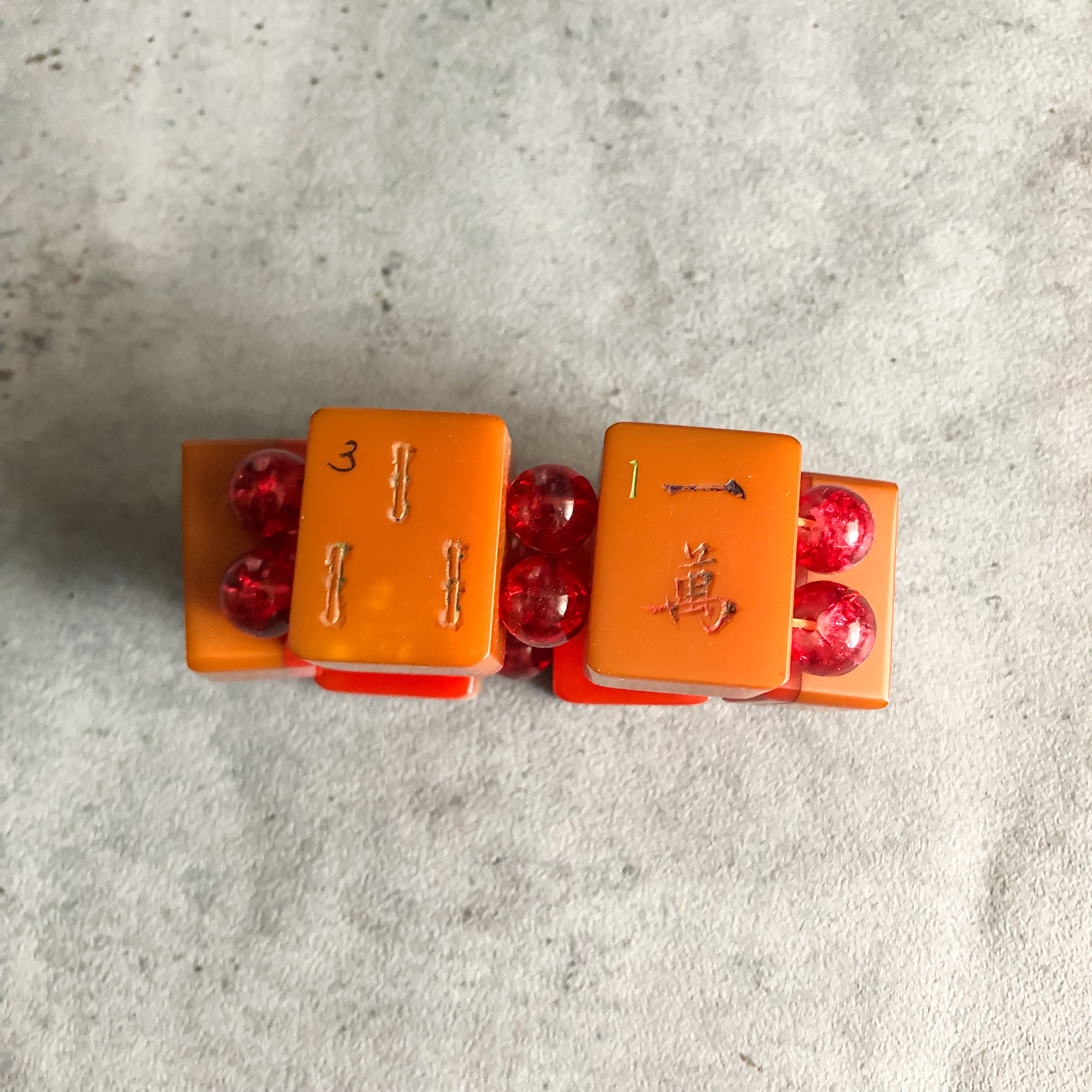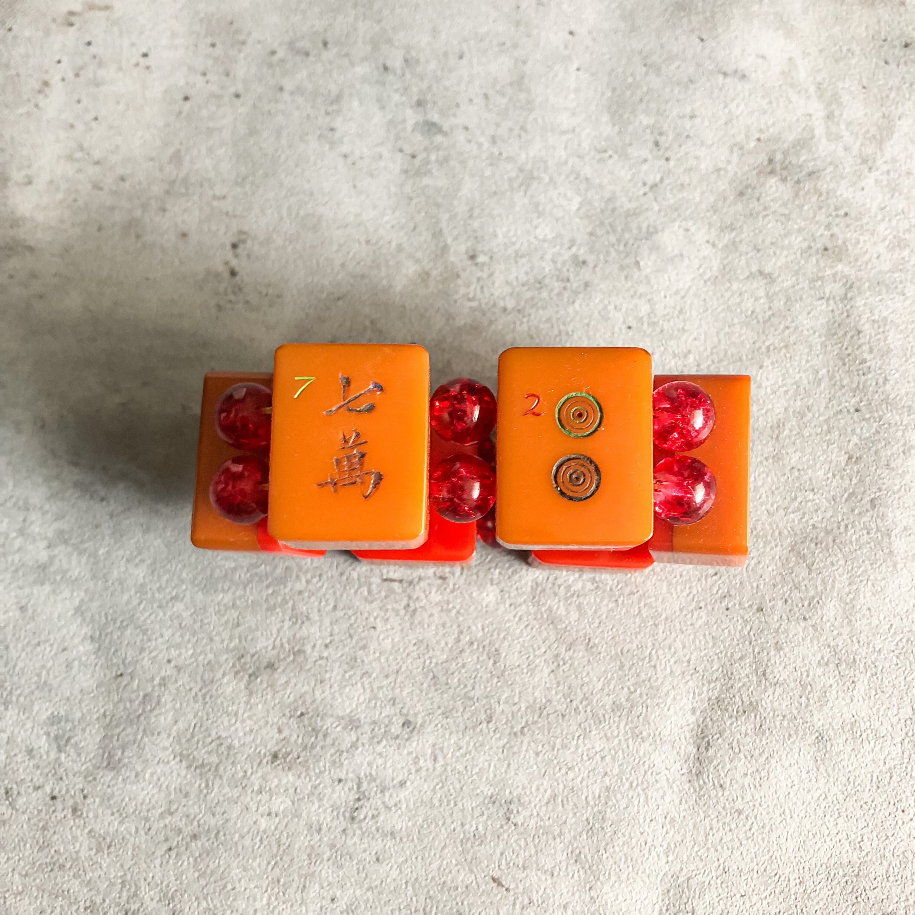 特徴 :希少な1950年代前後のベークライト素材の麻雀牌をリメイクして作られたブレスレットです。