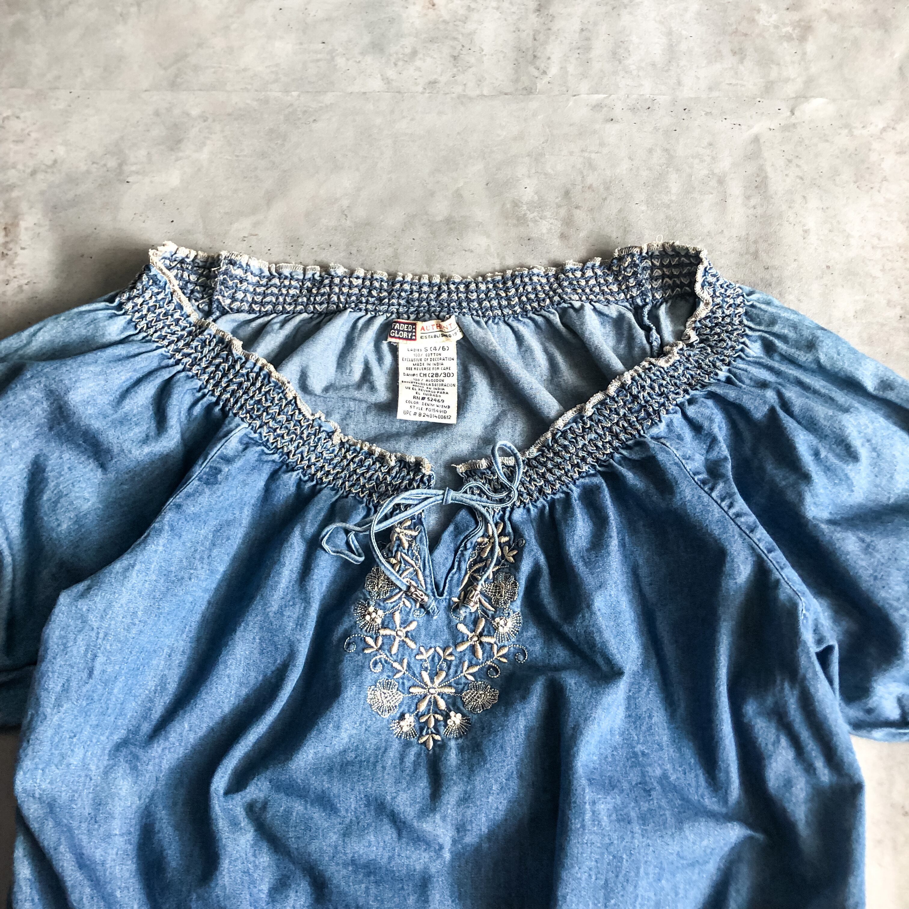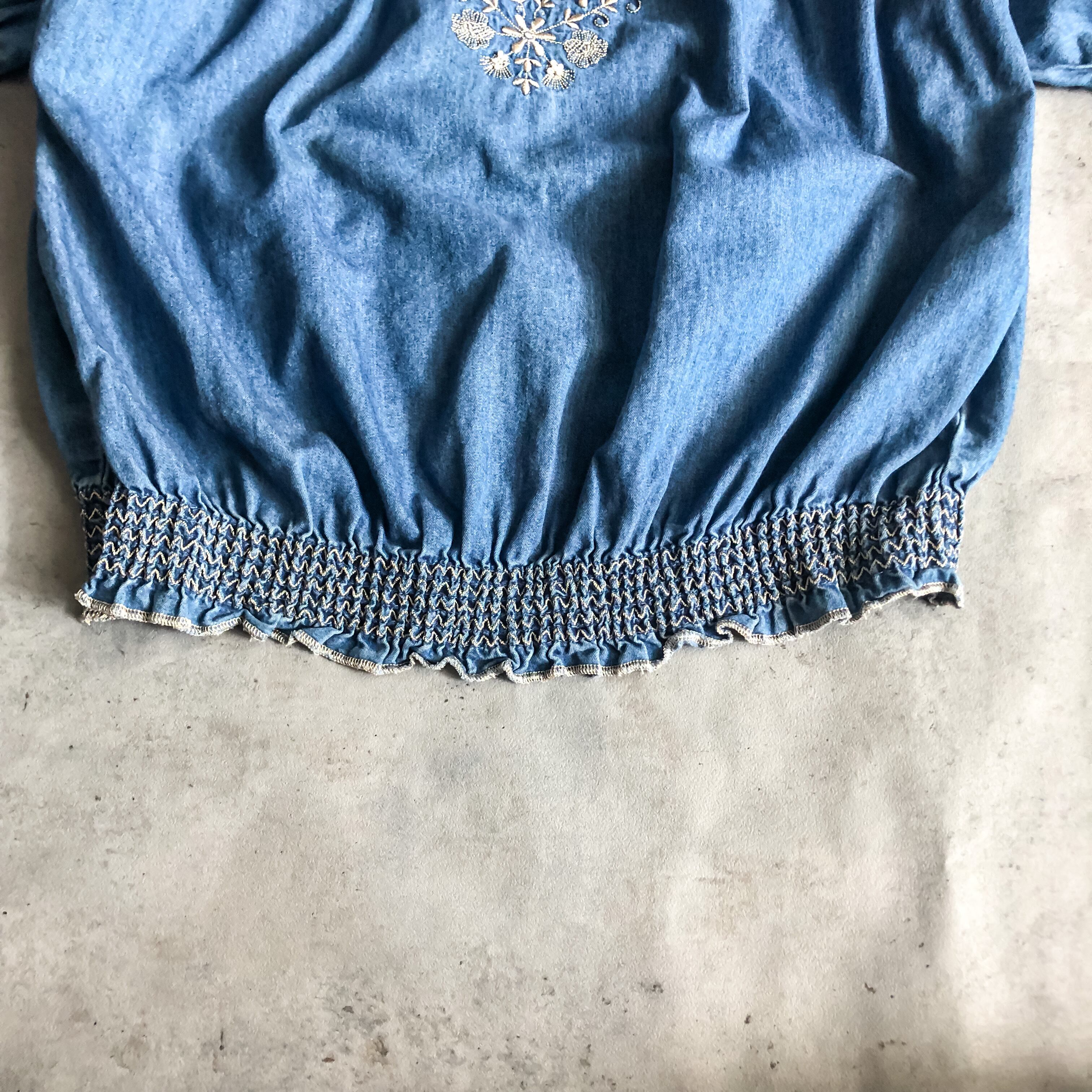 1990's~ embroidery design denim blouse