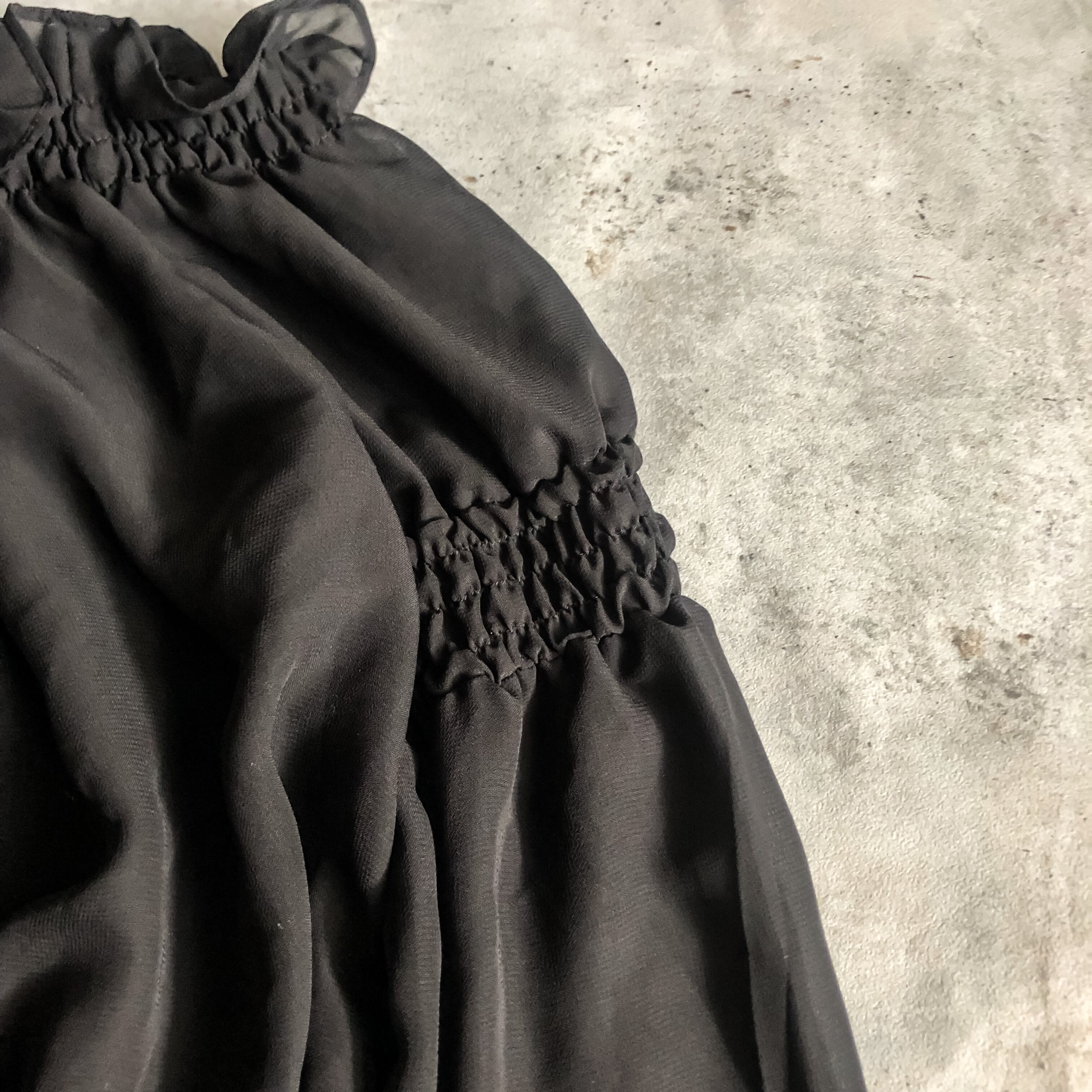 アームや裾のシャーリングやフリルのデザインが可愛い一枚です。