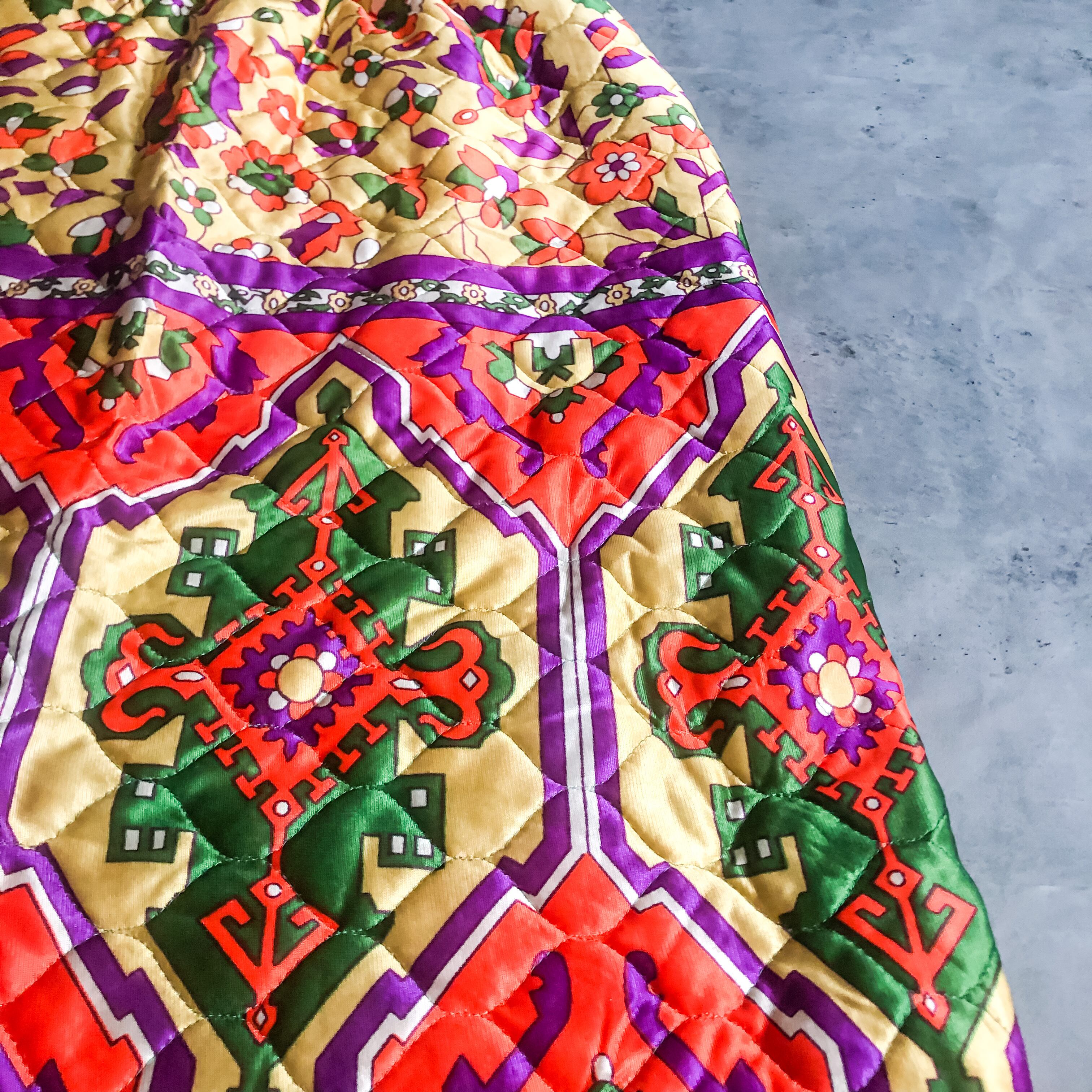 Vintage 1960's~1970's patterned allover quilting long skirt