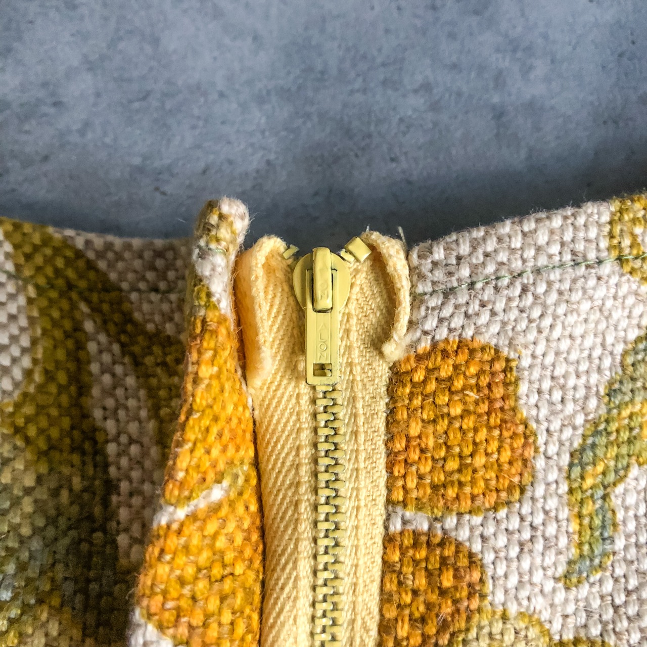 特徴 :ナチュラルな生成りベースにイエローのお花やグリーンのボタニカルのテキスタイルが素敵な1960's頃のスペシャルなタペストリーワンピース。