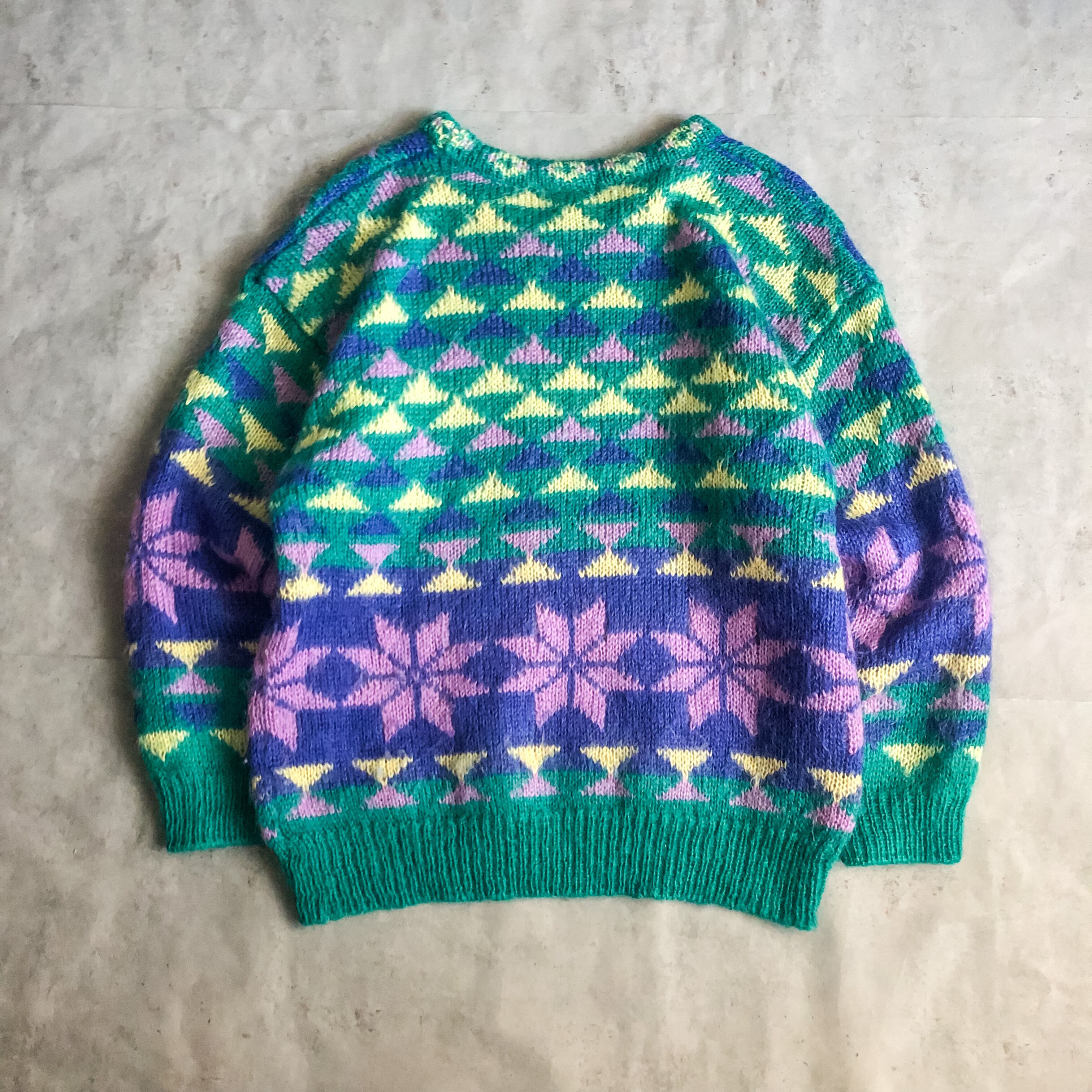 特徴 :ゆるめのサイズ感に少し毛足の長いモヘアとアクリル素材が使用された1980's~頃のデザインセーター。