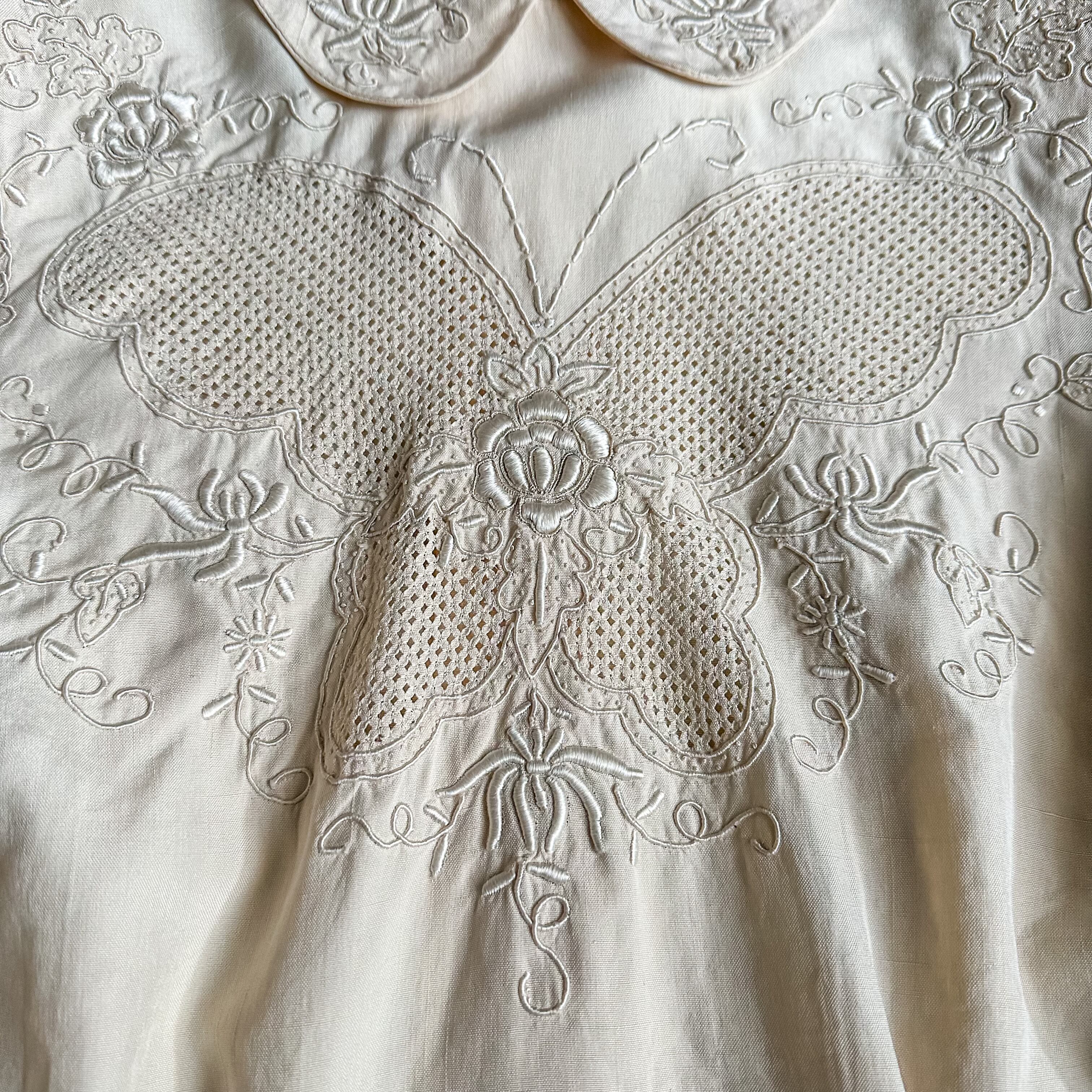 Vintage 1940's "butterfly" hand embroidery silk blouse