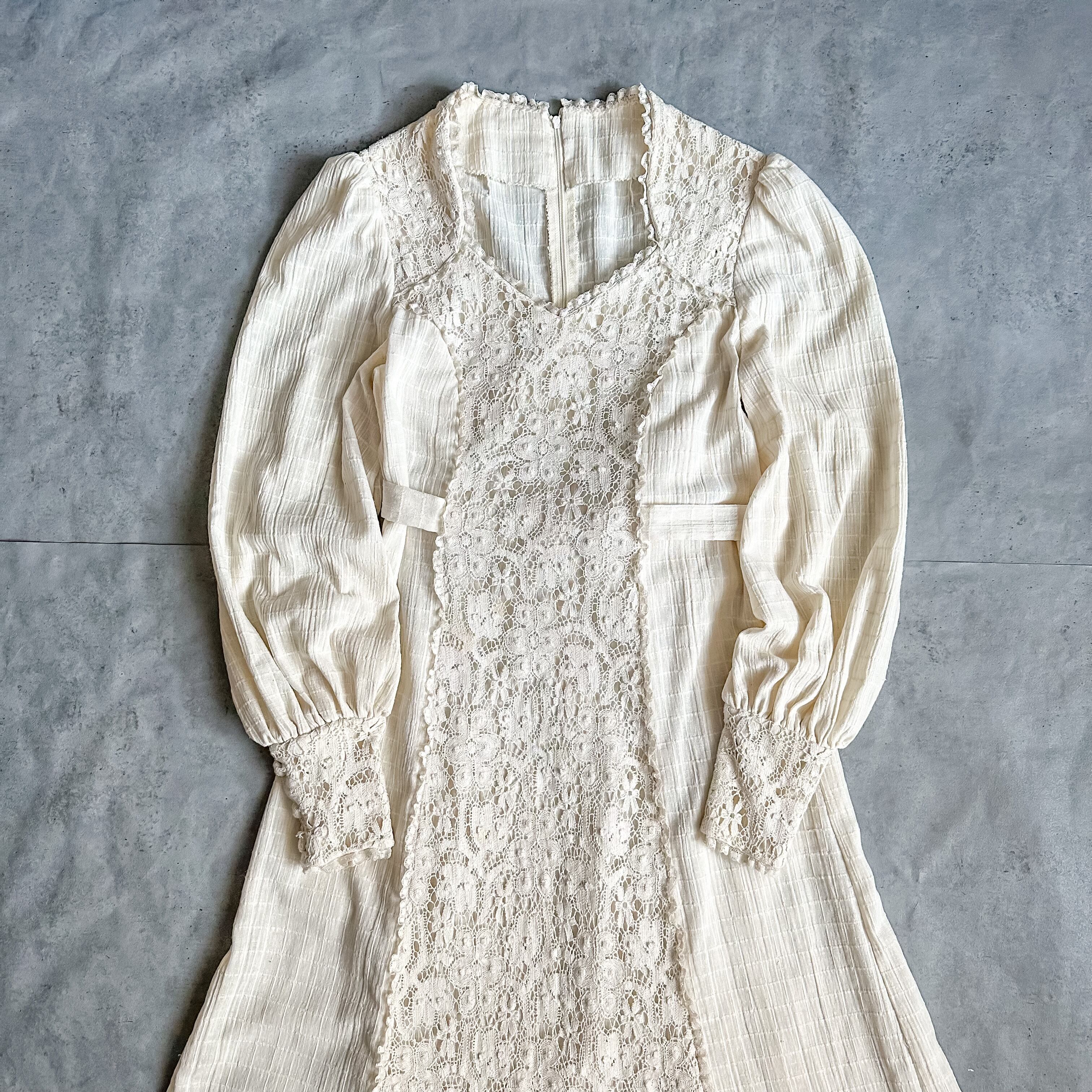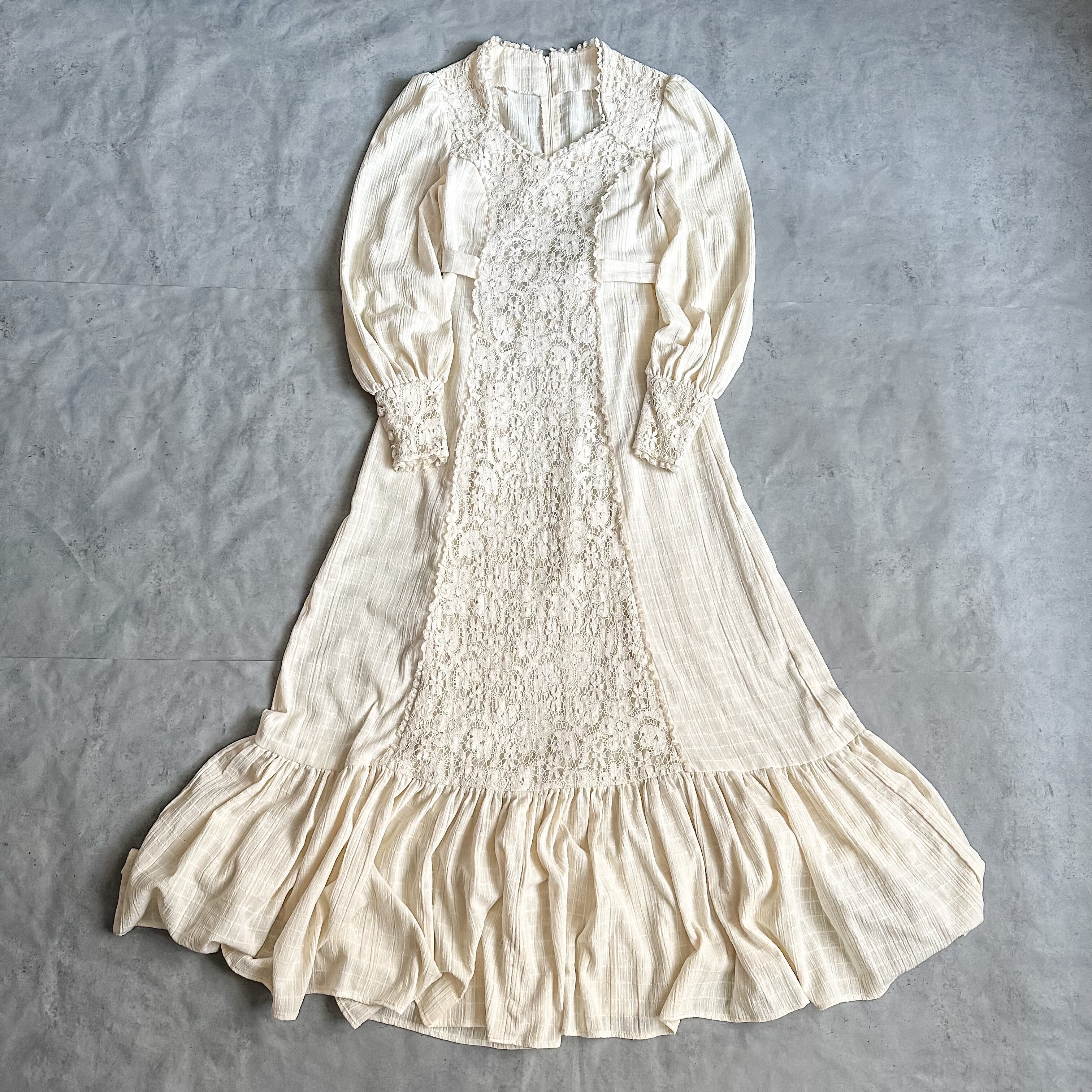 タグが欠損しているのですが恐らく1970年代のGUNNE SAXのワンピースの影響を受けて同年代頃に作られた一着かと思います。