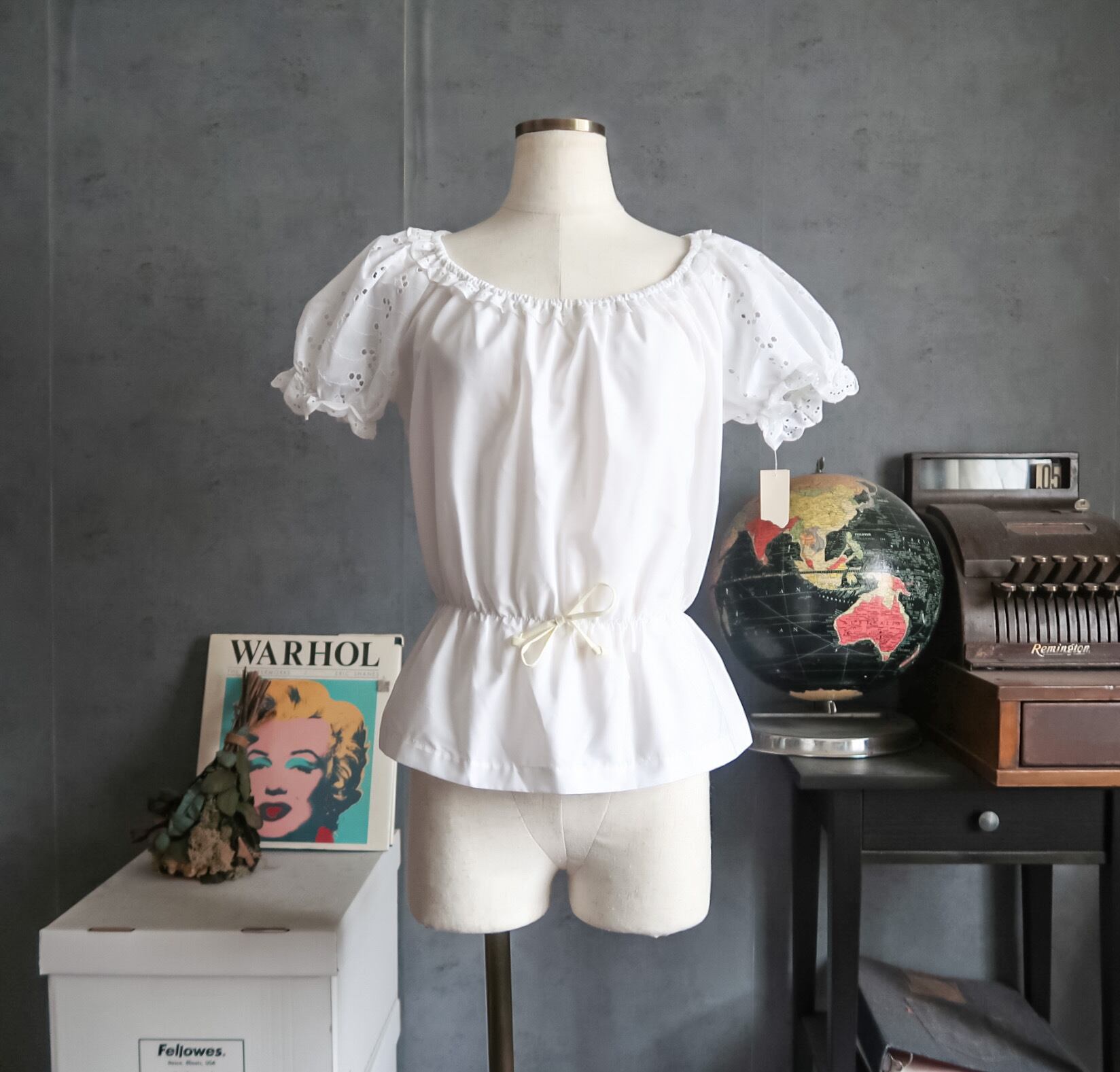 ホワイトカラーにふわっとしたパフスリーブや、カットワークとレースが美しい逸品です。