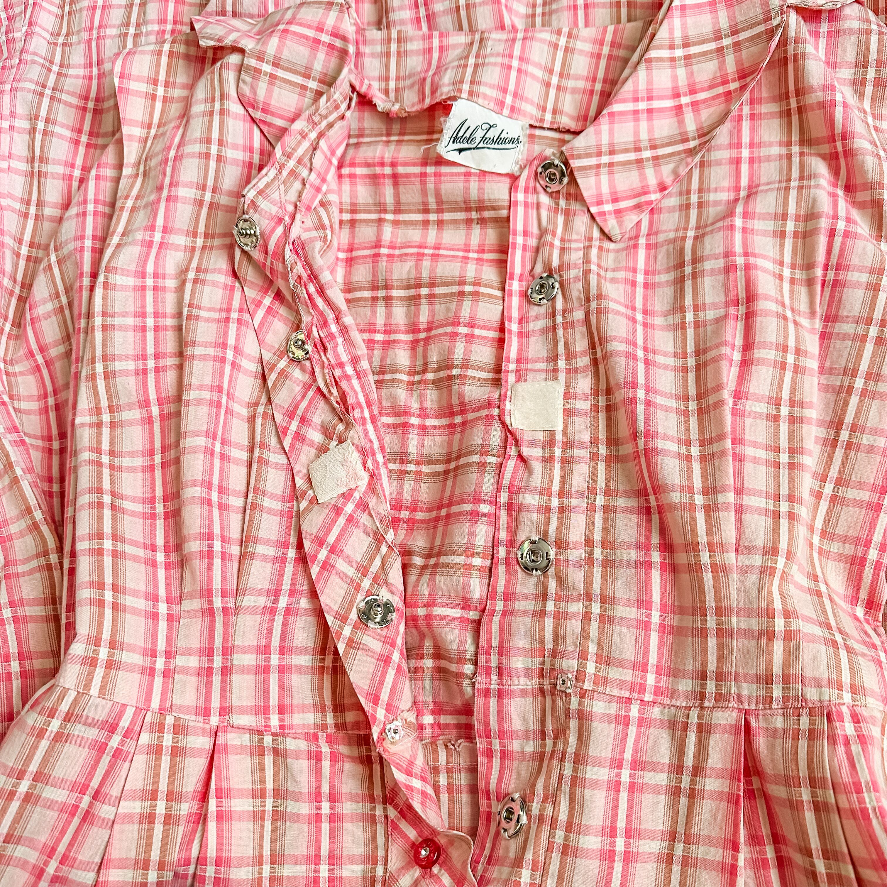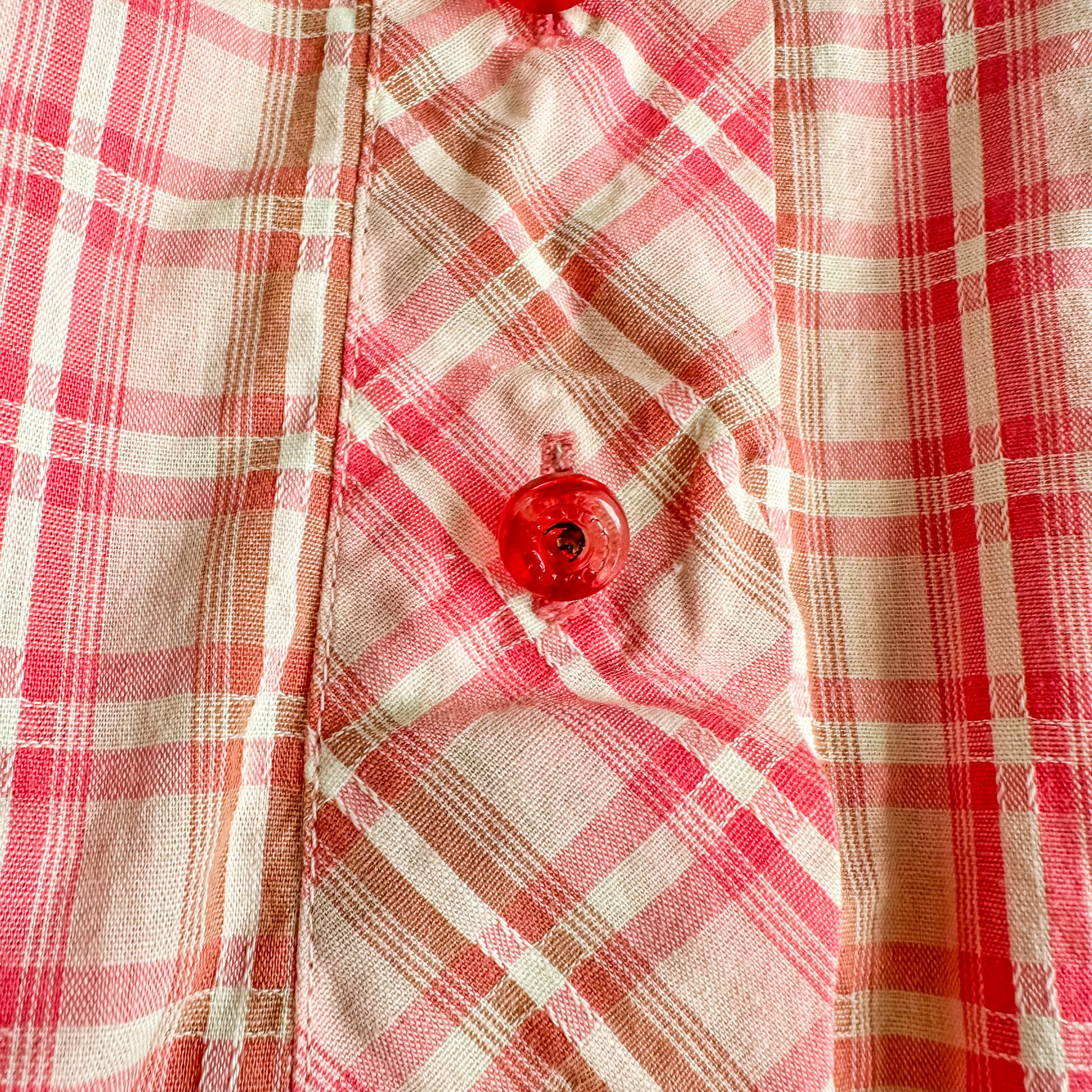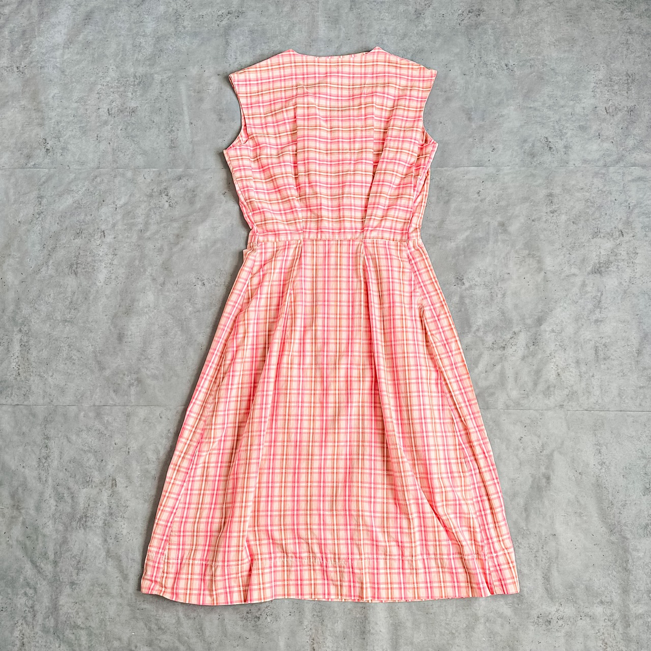 特徴 :ピンク系と柔らかいブラウンカラーのヴィンテージチェック柄ワンピース。