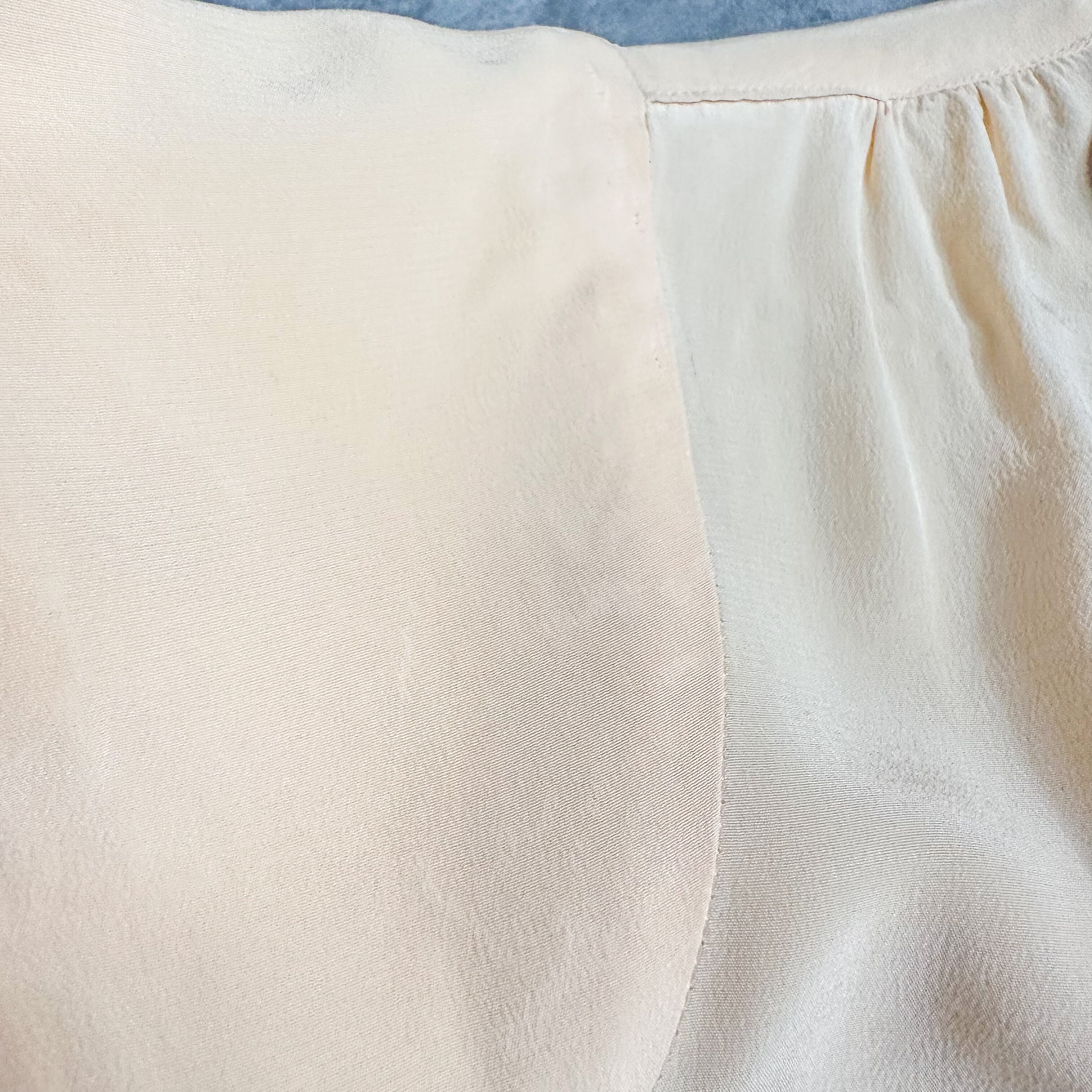 可愛いらしい二重になった丸みのある襟や、刺繍のデザイン、バックの猫目ボタンなどヴィンテージブラウスの中でも一際クオリティーの高い逸品です。