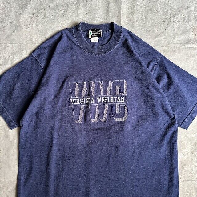 1990's "VIRGINIA WESLEYAN" navy embroidery college tee made in USA