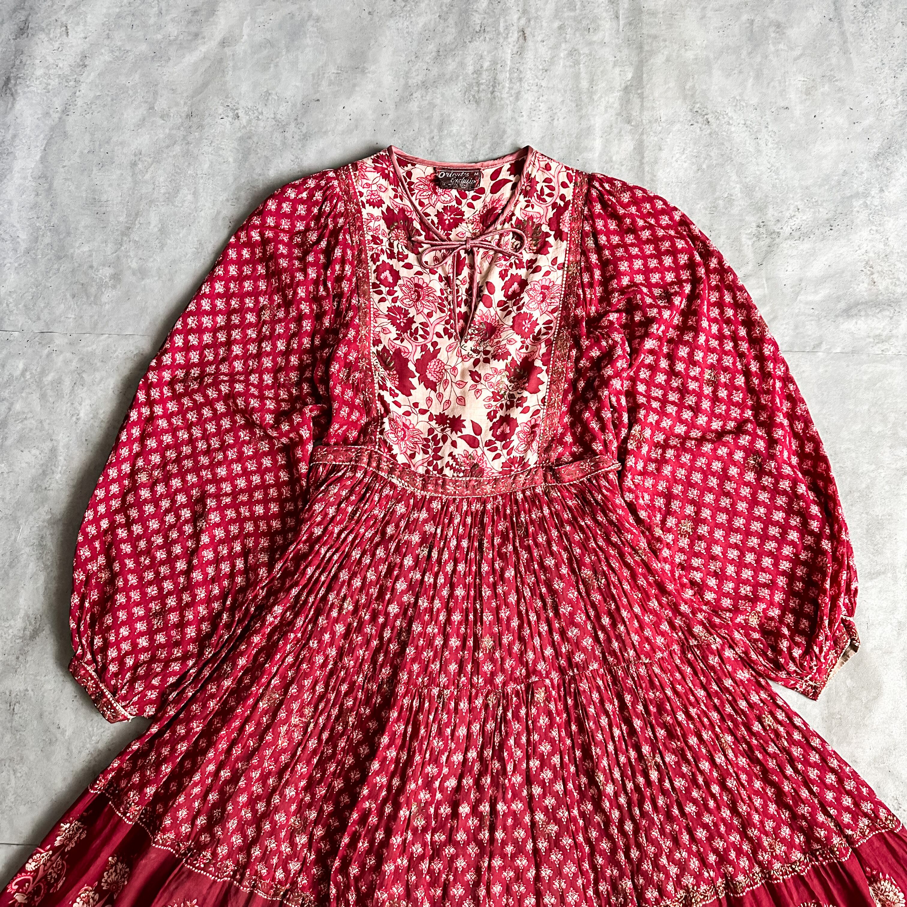 ヴィンテージのインド綿ワンピースの中でもなかなか出会えない、一際ハイクオリティな素晴らしい逸品になります。
