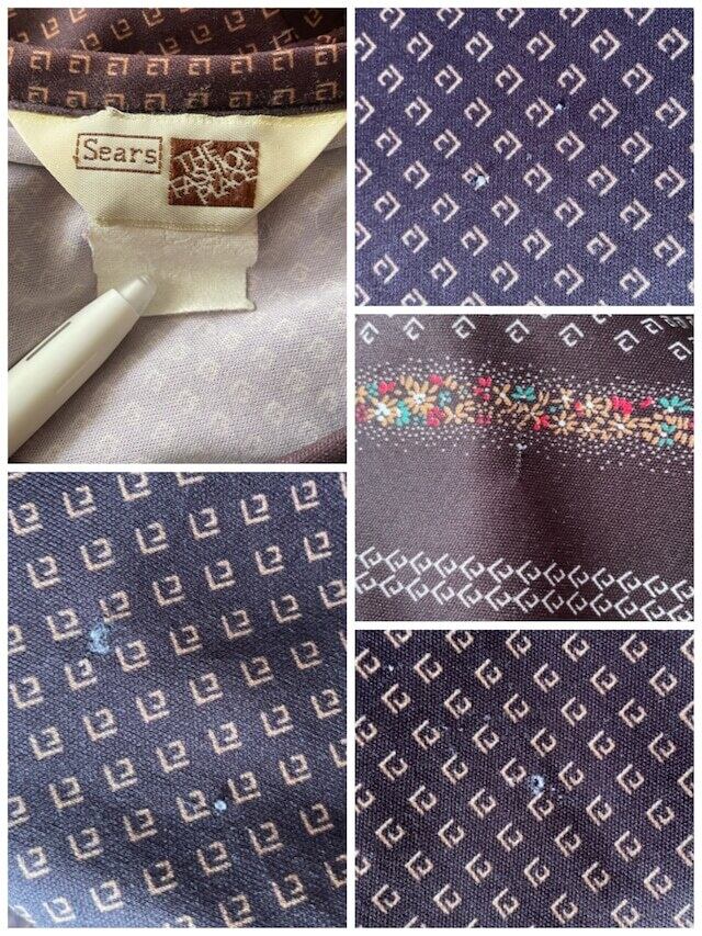 特徴 :1970's頃の特有のポリエステルと思われるとろみのある生地感が滑らかで肌触りの良いワンピース。