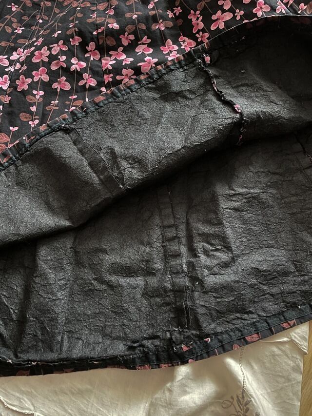 裏地は不織布のようなものが使われており縫い付けられています。(画像8枚目)