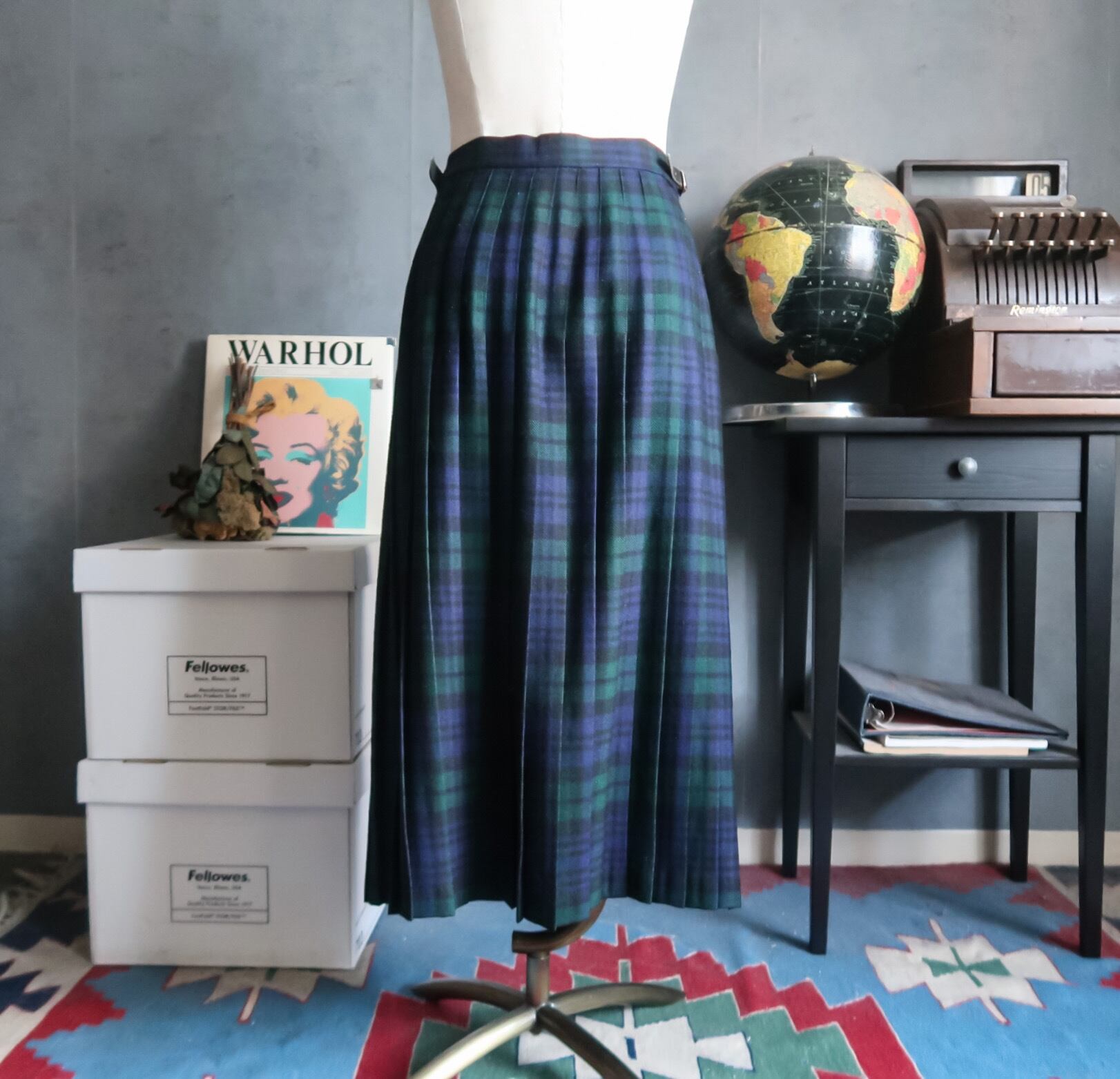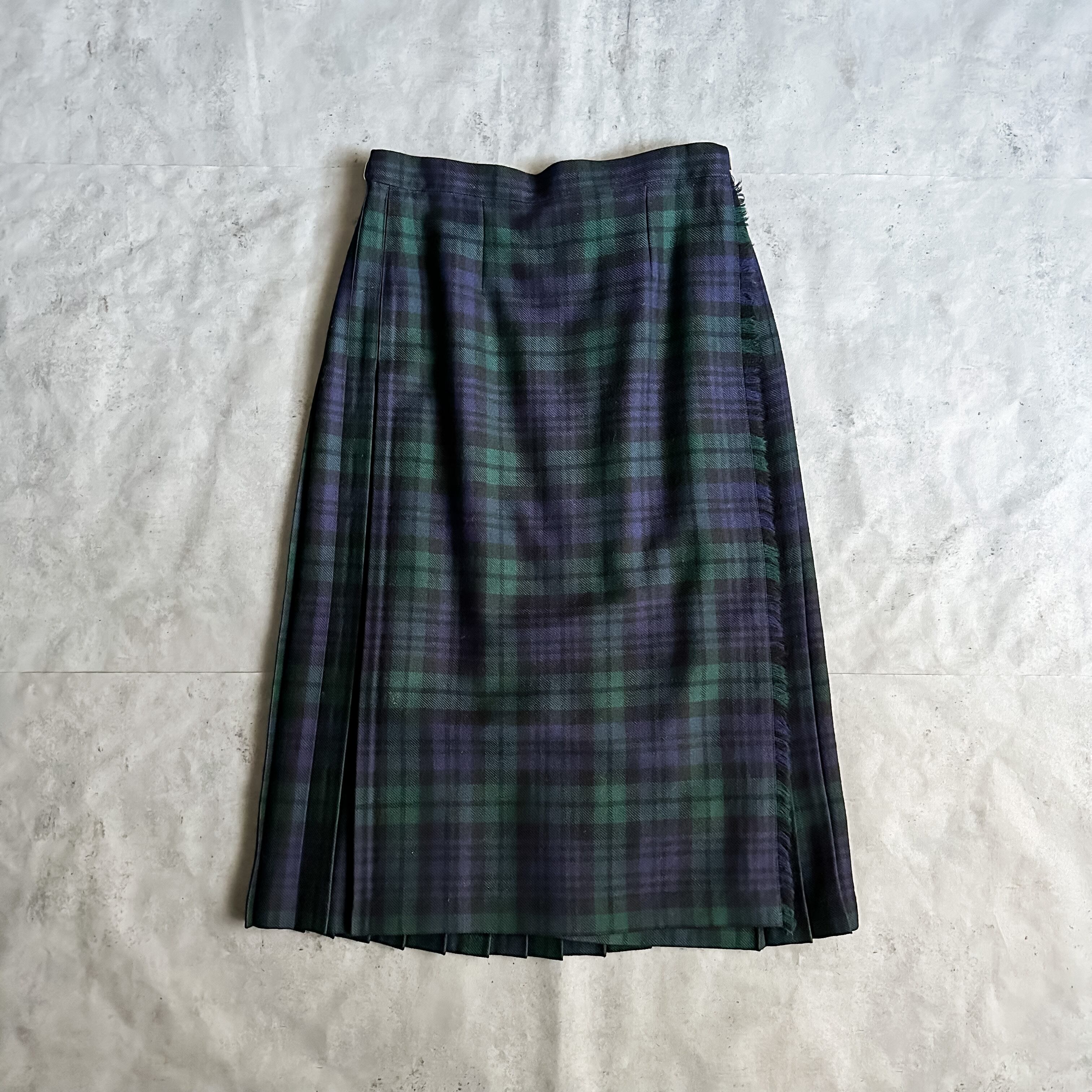 1980's plaid pattern wool wrap kilt skirt made in Scotland