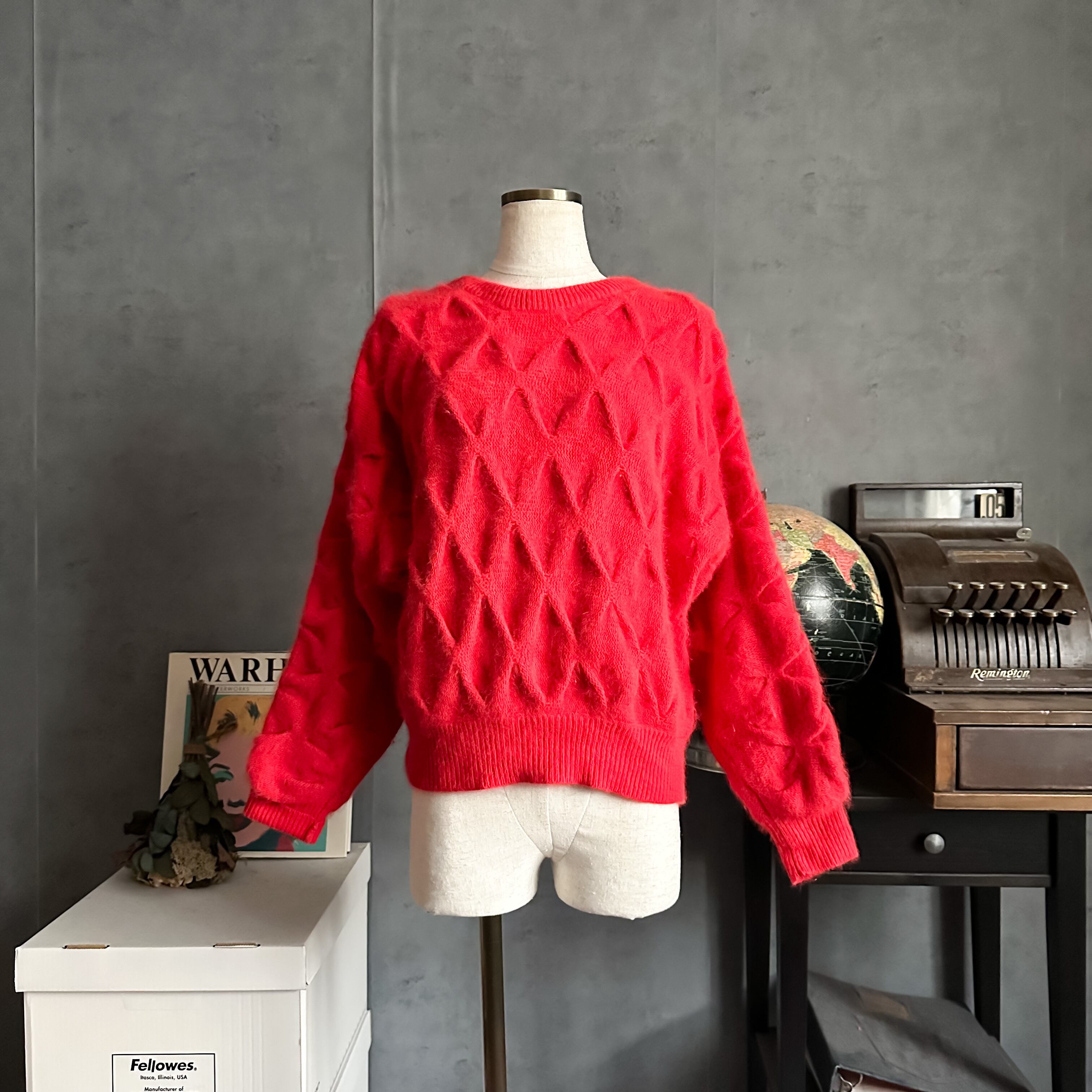 1990's red diamond pattern angora×wool sweater