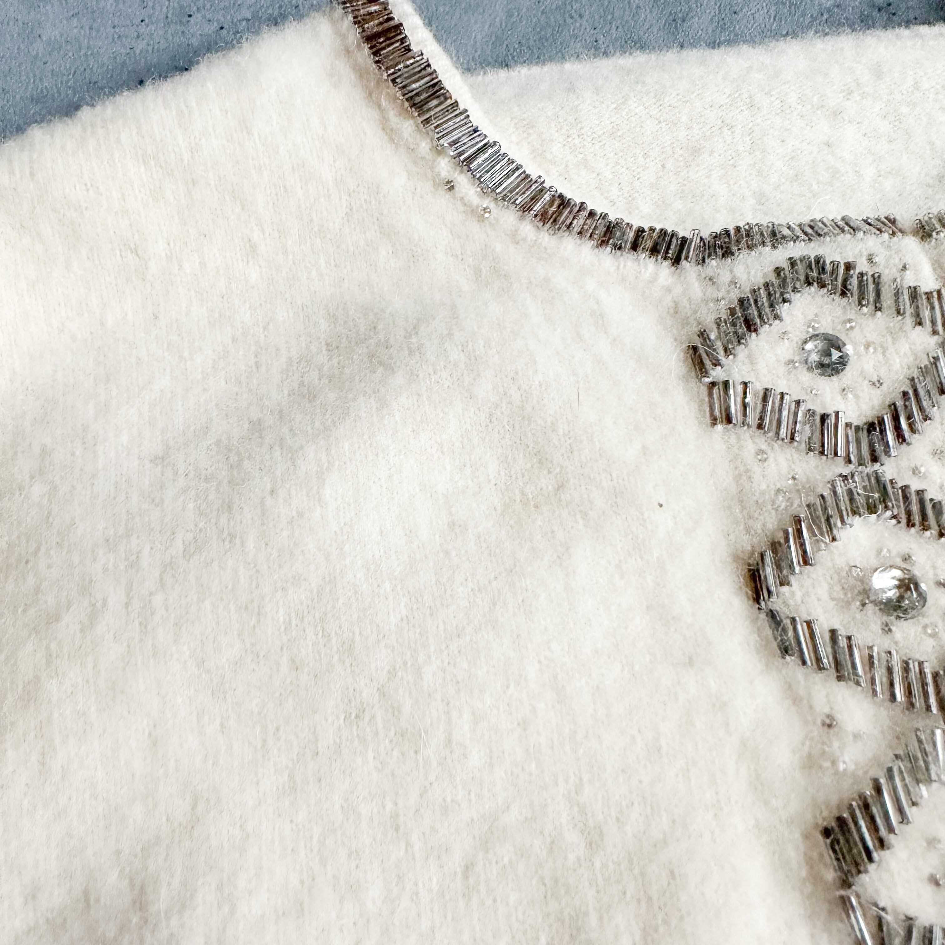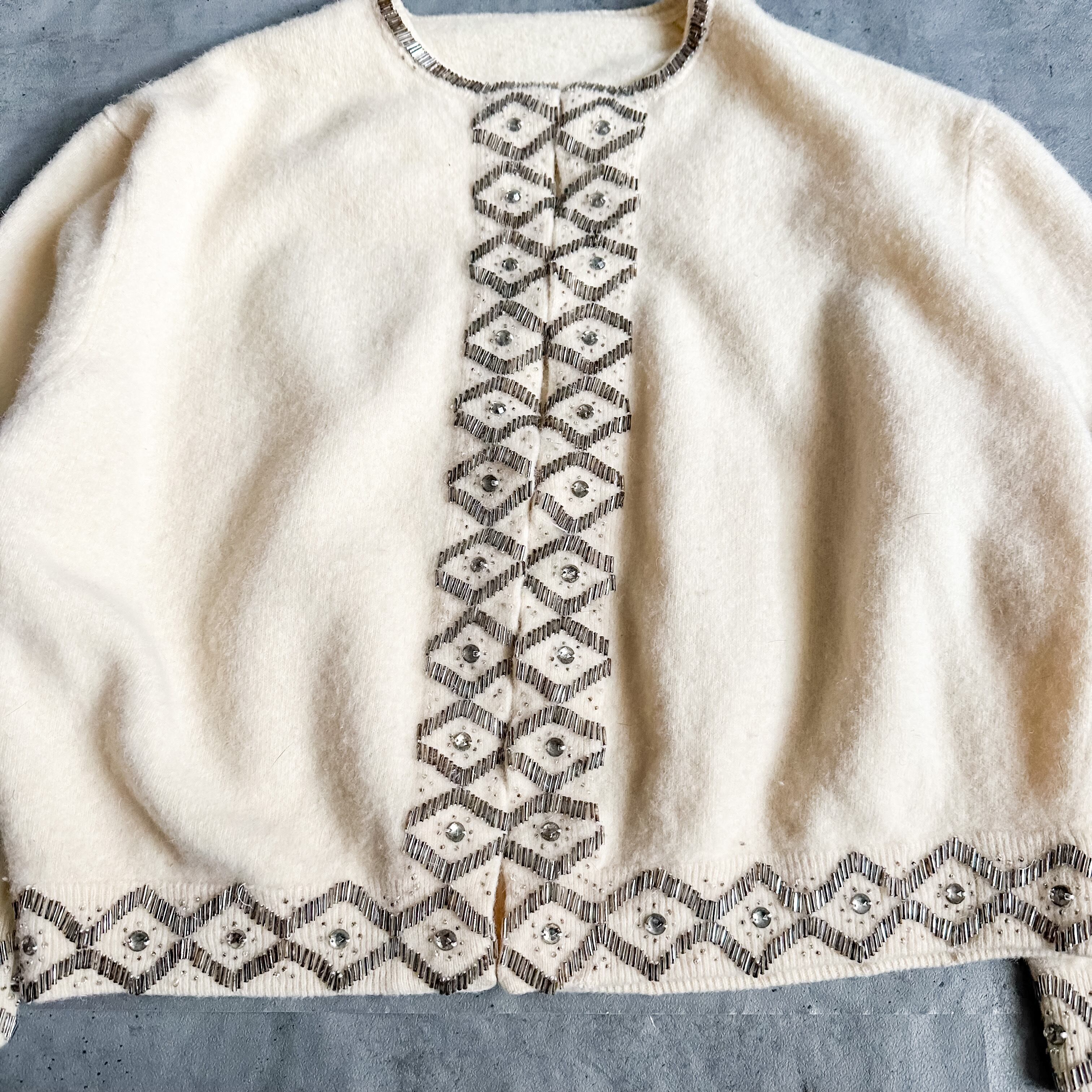 Vintage 1950's~ beaded×stone wool knit cardigan