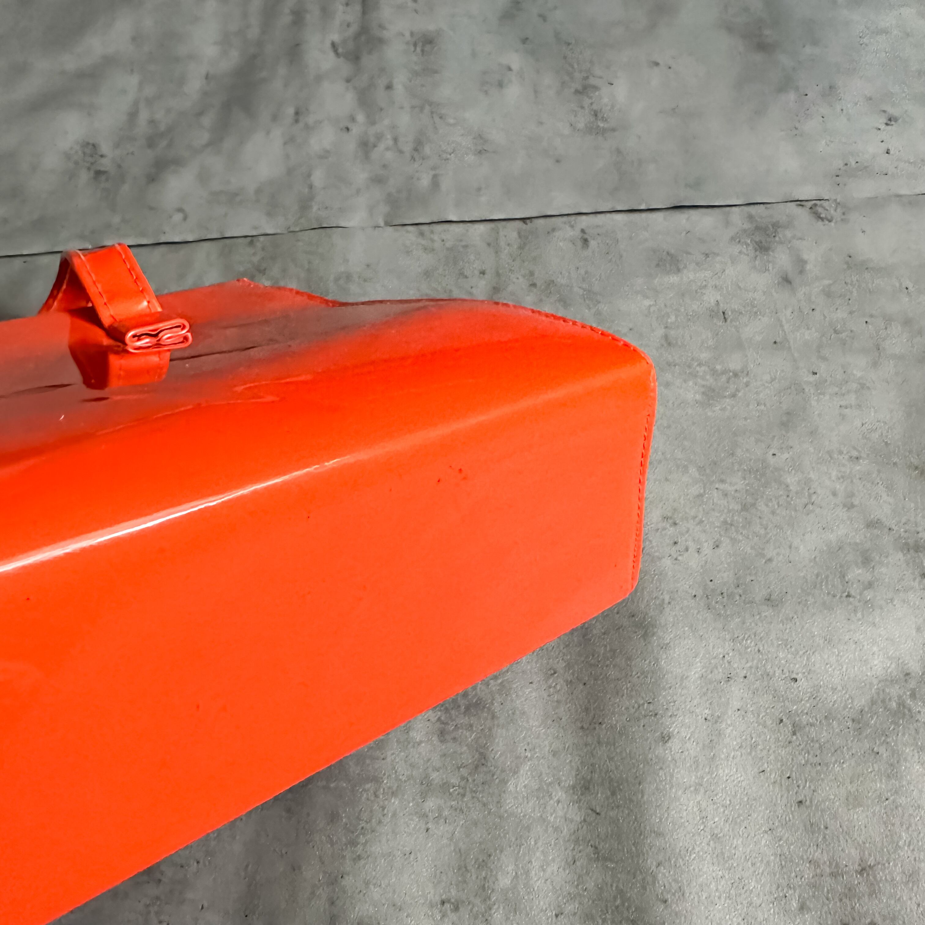 パテント素材にヴィンテージバッグではなかなか見かけない珍しいオレンジカラー。