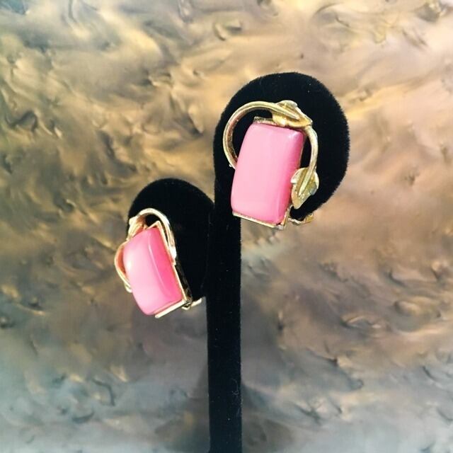 特徴 :可愛らしいピンク色のルーサイトイヤリングです。コスチュームジュエリーの人気ブランドcoroのもの。リーフモチーフのフレームもすごく凝っていて素敵です。メッキの剥げなどあるためリーズナブルなお値段に設定させて頂いております。