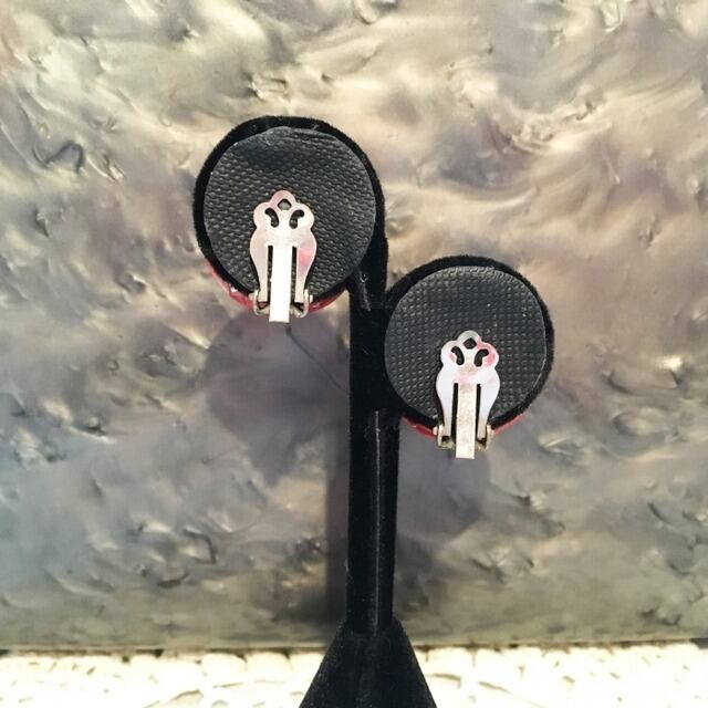 特徴 :深い赤にシルバーのコンフェッティが煌びやかなヴィンテージルーサイトイヤリングです。