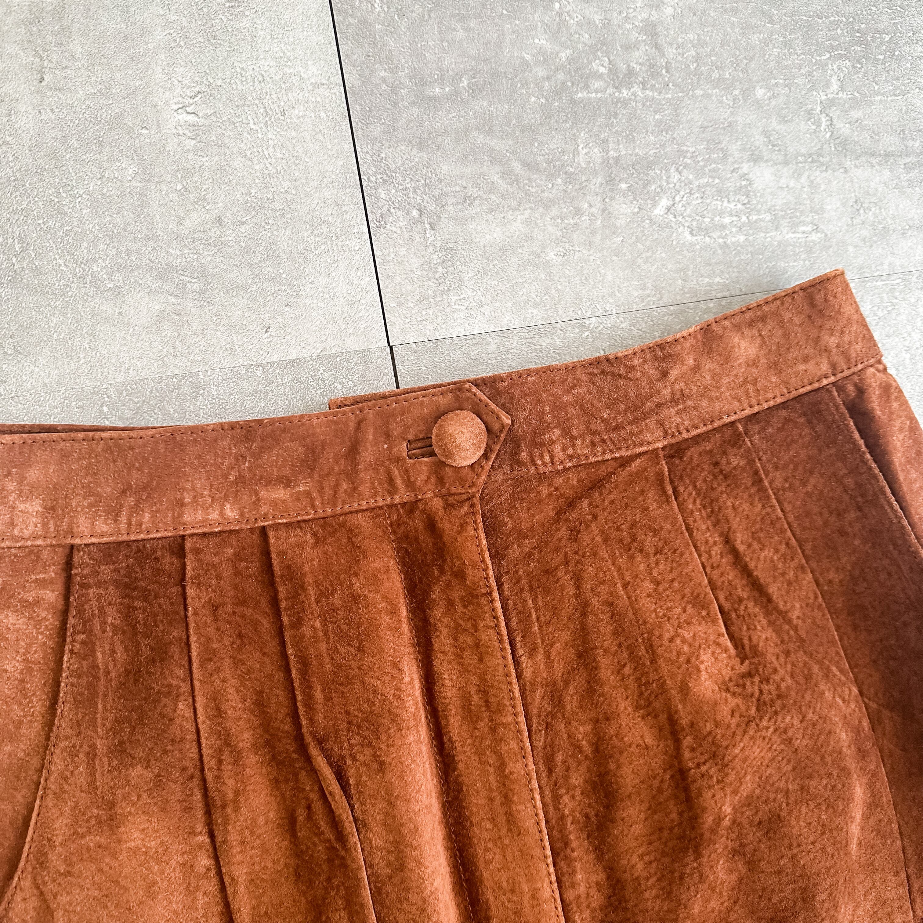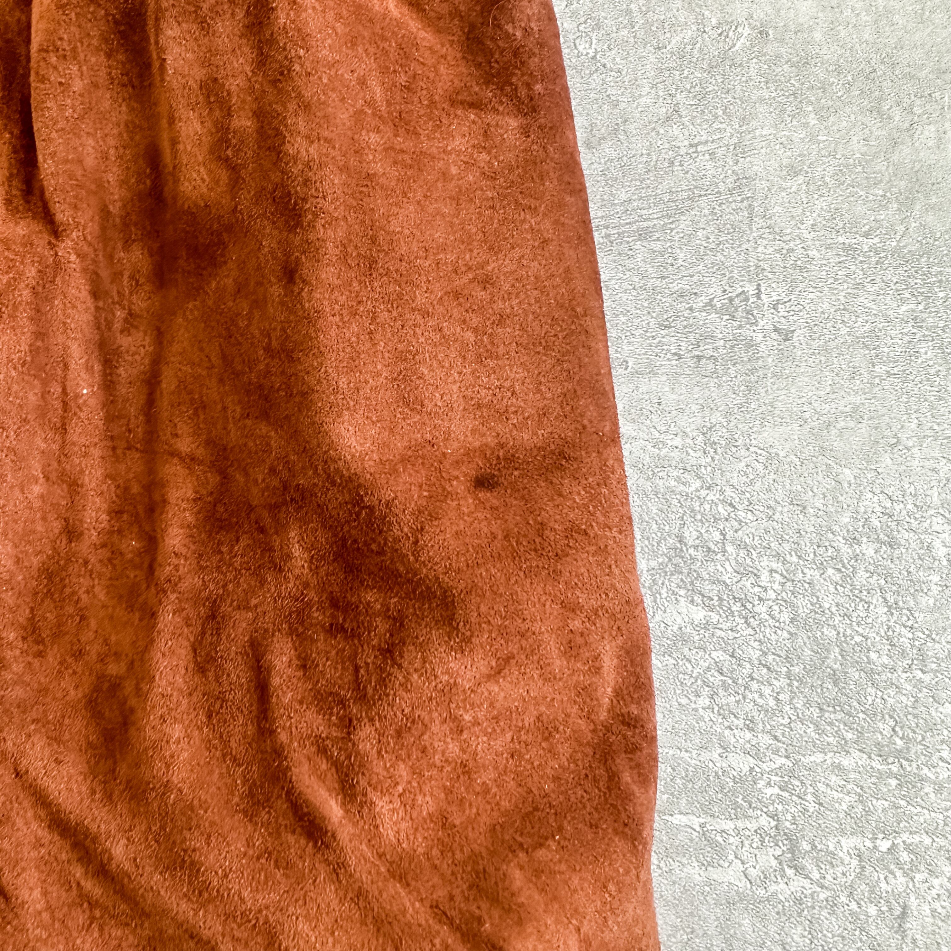 ブラウン系のカラーリングに、ピグスエードレザーが使用された大人な雰囲気のある一着です。