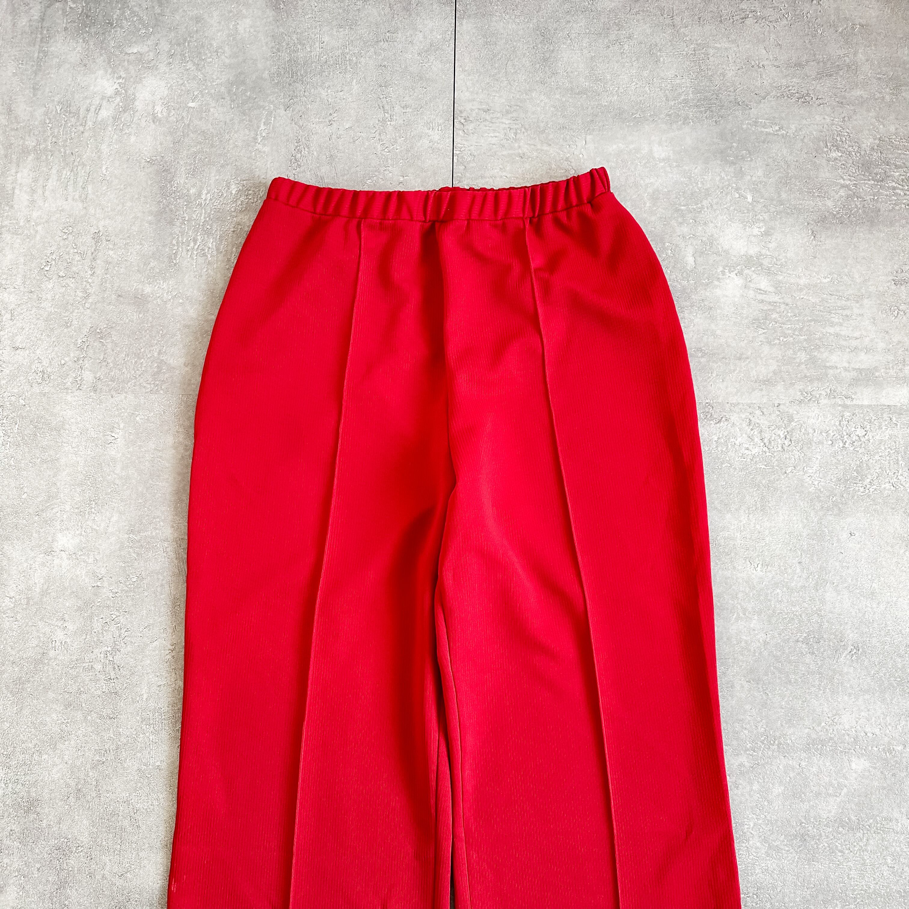 マルーン系のカラーリングにプリーツが入り、裾が少しだけ広がったフレアシルエット。