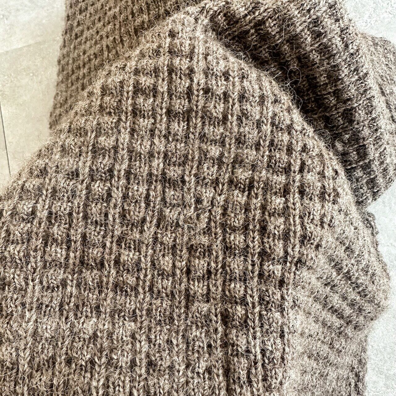 ブラウン系のカラーリングに、ポコポコとしたポップコーン編みのような立体的な編みが素晴らしいですね。